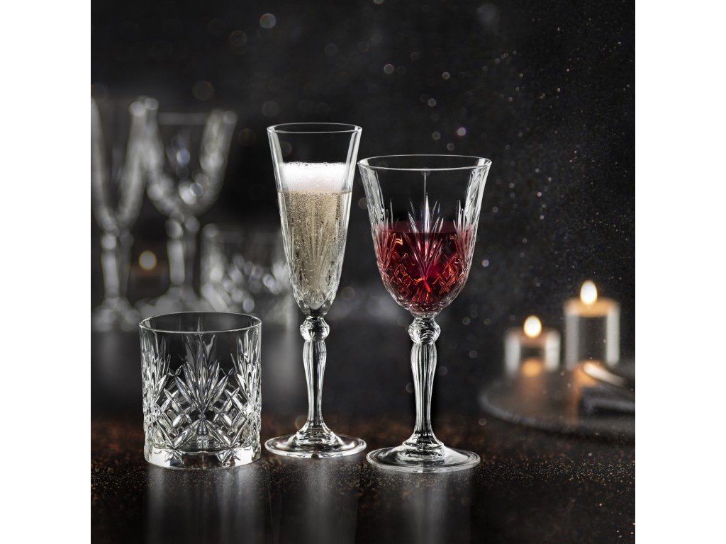 Kolekcia RCR Melodia prináša na stôl pôvab historických banketov. Tieto poháre na víno s objemom 210 ml sú určené pre tých a oceňujú váhu krištáľu a presný brus. Prepracovaný vzor na kalichu aj stopke odráža svetlo a vytvára jedinečnú atmosféru. Pre reštaurácie a hotely je tento model zárukou štýlu a nikdy nevychádza z módy. Pevná konštrukcia a bohatý dekor dodávajú každému dúšku punc výnimočnosti.