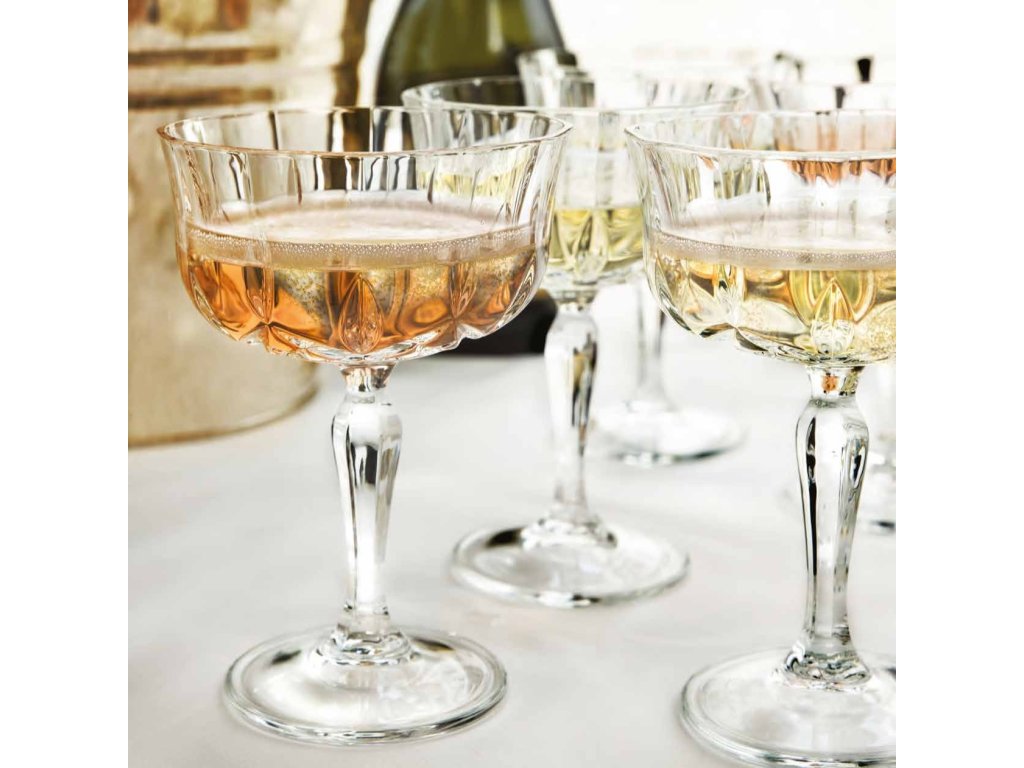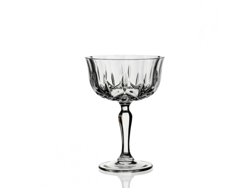 Kolekcia RCR Opera v prevedení Champagne Goblet vracia do módy aristokratický štýl pitia šumivých vín. Tieto brúsené poháre na šampanské s objemom 240 ml sa líšia od bežných fláut svojím širším kalichom a robustnou stavbou. Hlboké dekoratívne rezy lámu svetlo a premenia zlatistý mok na vizuálny klenot. Pre prémiové svadby, hotely a eventy je tento model jasnou voľbou. Spája v sebe nostalgiu starých čias s modernou technológiou a odolnosťou.