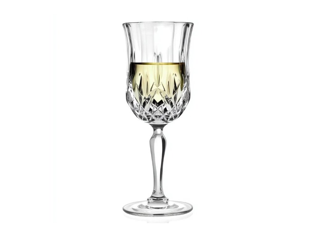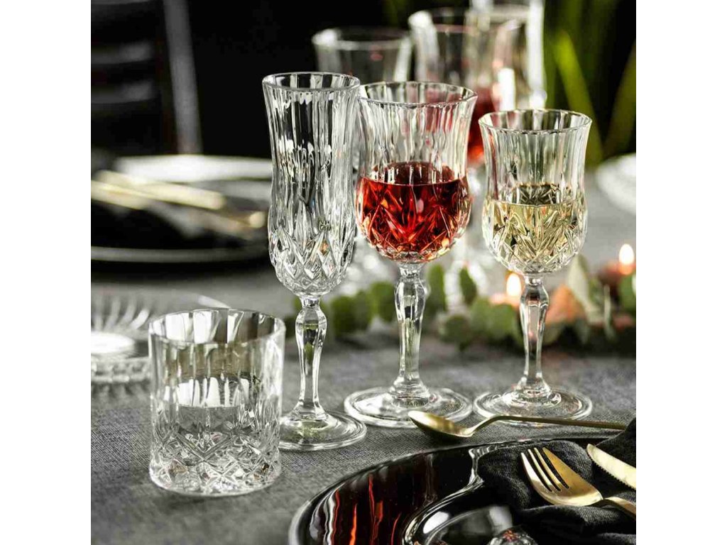 Brúsené poháre na biele a dezertné víno. Geometrický dizajn Opera a krištáľ Luxion® pre elegantné talianske stolovanie.