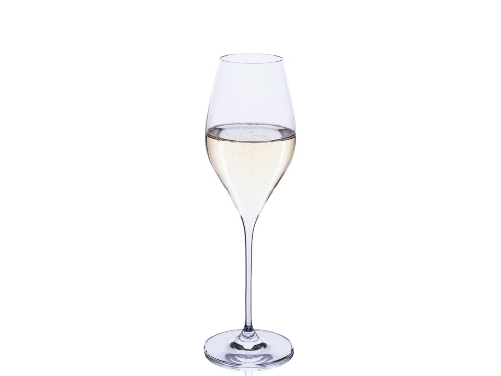 Veľkorysý pohár typu "Grand Champagne". Širší kalich v tvare tulipánu a elegantná ťahaná stopka sú ideálne pre Vintage šampanské a Prosecco, ktorým umožnia naplno rozvinúť buket.