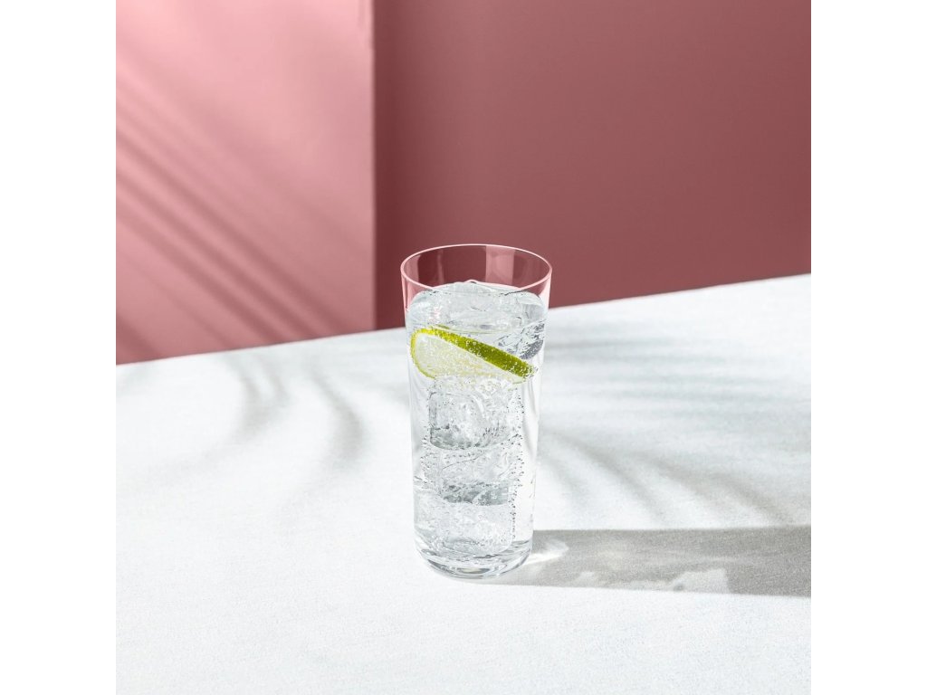 Ručne vyrábaný krištáľový pohár s čistým minimalistickým dizajnom, ideálny na sofistikované longdrinky.