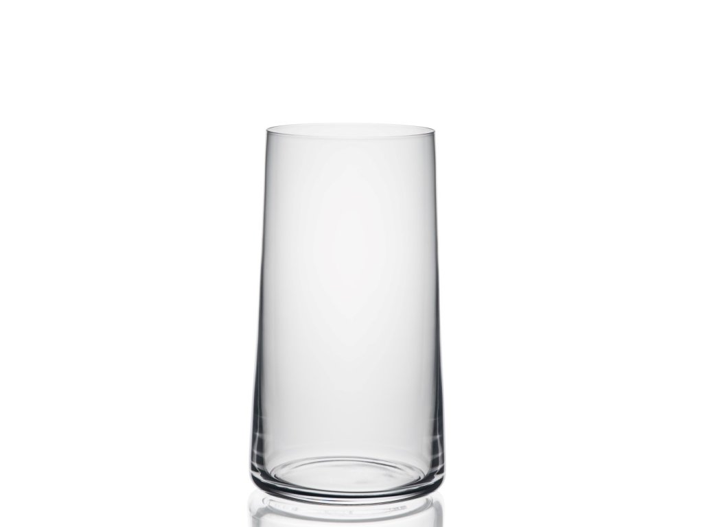Kolekcia Mode by nebola kompletná bez poriadneho pohára na vodu a miešané nápoje. Model Highball s objemom 430 ml preberá DNA celej série – má výrazné ploché dno a steny, ktoré sa smerom nahor jemne kónicky zužujú. Tento tvar pôsobí na stole dynamicky a tvorí perfektný vizuálny pár s vínovými pohármi Mode.